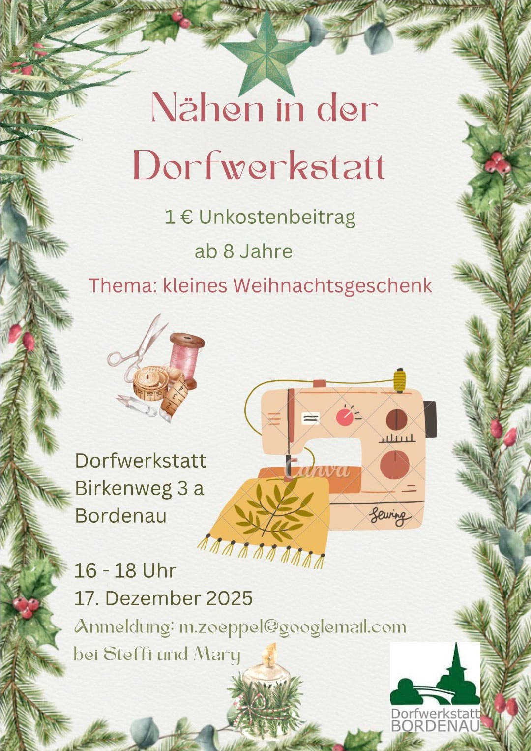 Wir treffen uns alle 14 Tage am Freitagnachmittag 15 – 17.00 Uhr in der Dorfwerkstatt, Birkenweg 3a, in Bordenau.