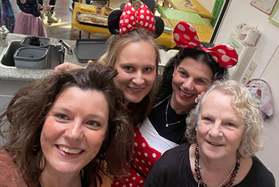 Anne Zittlau (Neandertalerin), Maria Privitera-Axler (Maus mit dunklen Haaren), Kornelia Badorrek (Blumenfrau), Julie Schwebs (Maus mit blonden Haaren).