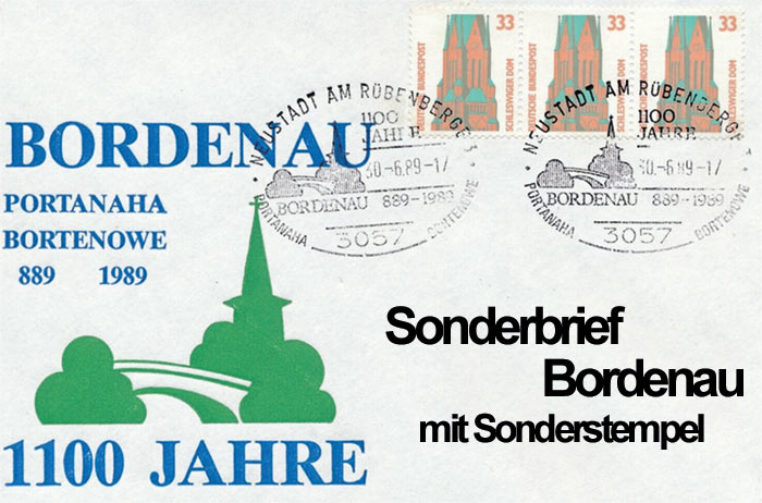 Im Jahre 1989 konnte Bordenau das 1.100-jährige Jubiläum seiner ersten urkundlichen Erwähnung feiern. Der Höhepunkt der Feierlichkeiten und Aktivitäten mündete in der Festwoche vom 30. Juni bis 09. Juli 1989. Zum Fest wurde sogar ein Sonderbrief mit Sonderstempel herausgegeben.